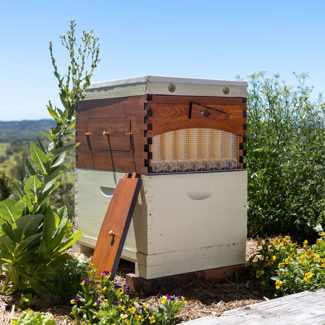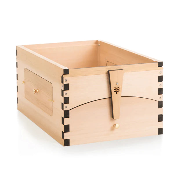 Manufactured from premium, sustainably sourced, western red cedar, the Flow Super – Flow Hive 2+ features 2 x observation windows, brass fixtures and is available with 6 or 7 Flow Frames.